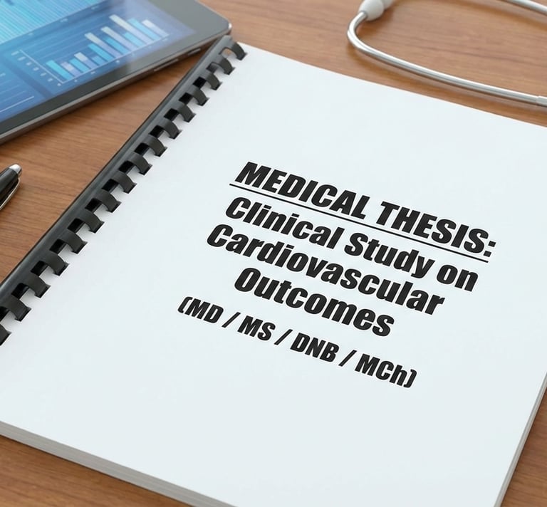 Complete, structured, and original Medical Thesis writing across all specialties—Medicine, Surgery, Pediatrics, OBG, Orthopaedics, Anaesthesia, Radiology, ENT, Ophthalmology, Emergency Medicine, and more. Each thesis is customized to your university guidelines and specialty requirements.