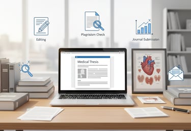 Complete, structured, and original Medical Thesis writing across all specialties—Medicine, Surgery, Pediatrics, OBG, Orthopaedics, Anaesthesia, Radiology, ENT, Ophthalmology, Emergency Medicine, and more. Each thesis is customized to your university guidelines and specialty requirements.
