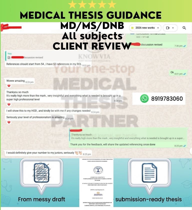 We take pride in helping medical students and researchers successfully complete their MD, MS, and DNB thesis work. Our goal is to transform complex research ideas into well-structured, high-quality, submission-ready theses.
